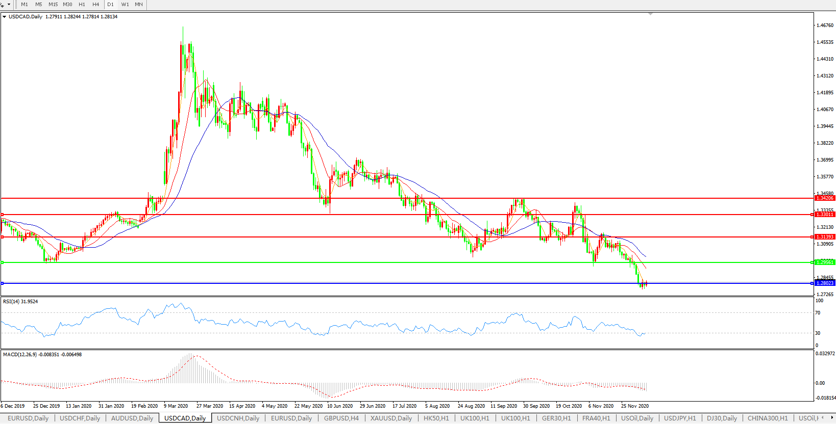 美元兑加元USDCAD 日线图: