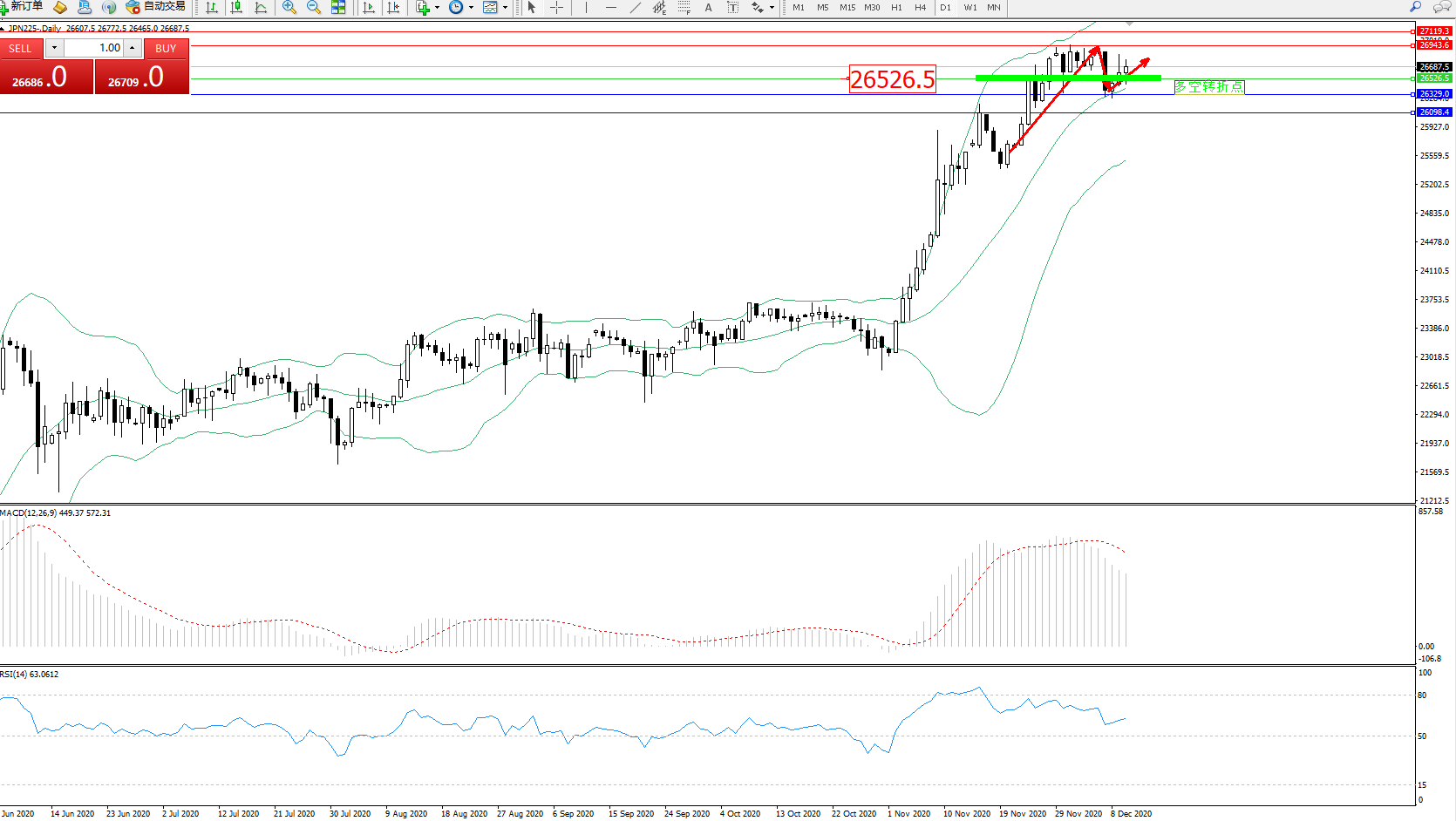 日经225指数12月10日(周四)收盘下跌50.94点,跌幅0.19%,报26767.00点。日本政府预计其经济刺激计划将使经济增长3.6%,超过了之前的预期和市场的普遍预期,而且近期新冠疫苗消息相对乐观,在经过两次大规模的额外预算后,这一预测过于乐观,投资者需要予以警惕。尽管许多经济学家认为,随着危机或经济衰退的结束,刺激计划影响通常会随着时间的推移而减弱。但日本首相菅义伟仍表示,本次7080亿美元的一系列经济刺激计划影响力将超过今年内采取的所有更大规模刺激计划。据日本内阁府计算,该刺激计划对日本经济的直接提振将达到20.1万亿日元(合1930亿美元),其中很大一部分将持续到2022年3月底。这相当于国内生产总值的3.6%。报告称,其中16.5万亿日圆将来自中央政府的直接支出,其余将来自私营企业和地方政府。