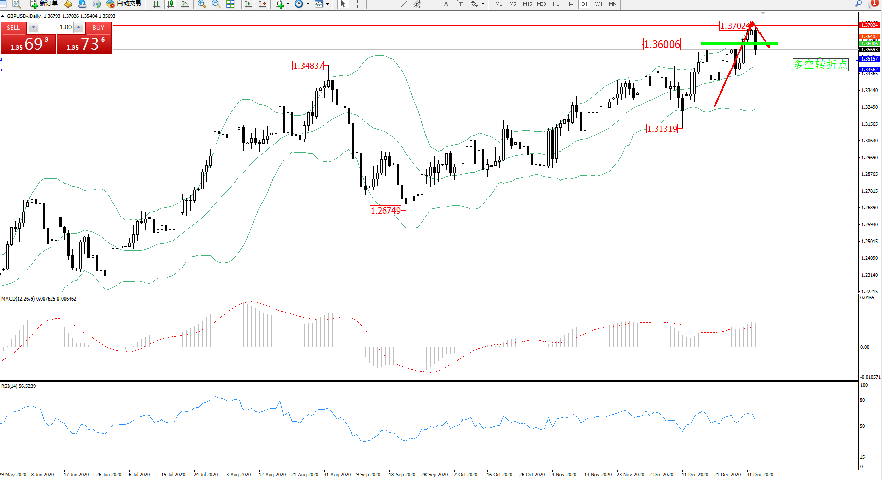 备选策略:1.36006上方看涨,目标1.36402、1.37024