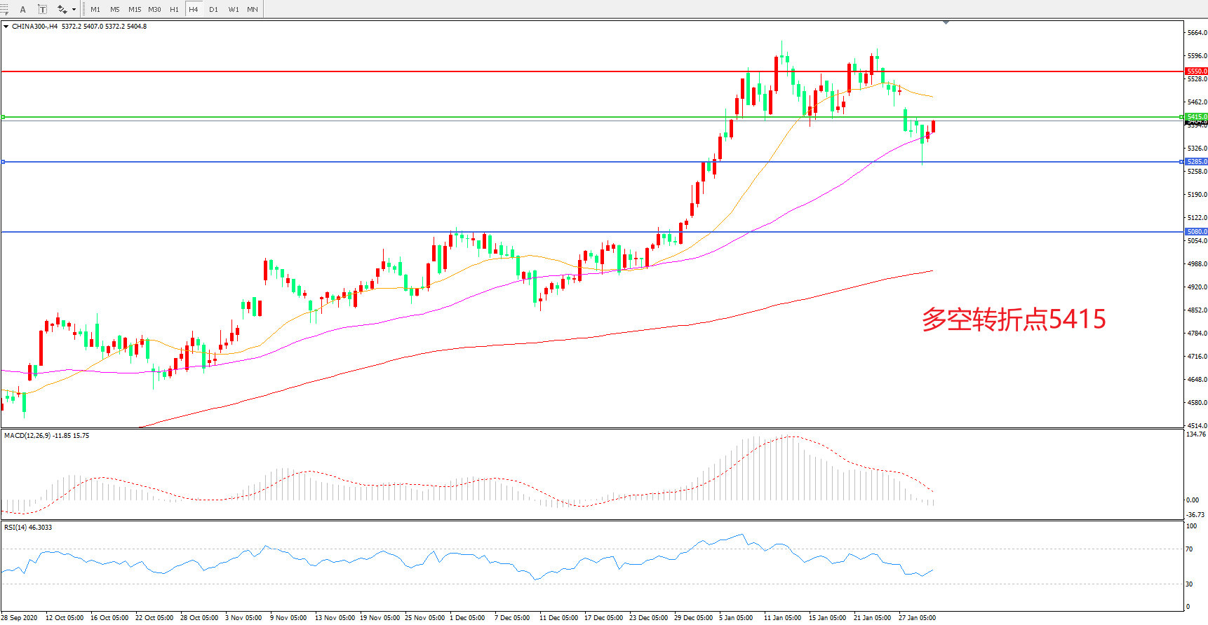 交易策略: 在5415.00之下看跌,目标5285.00    5080.00
