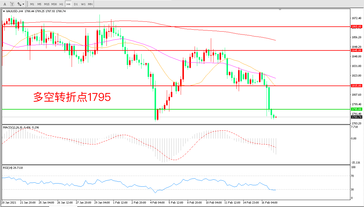 交易策略:在1795.00之下看跌,目标1815.00 1845.00