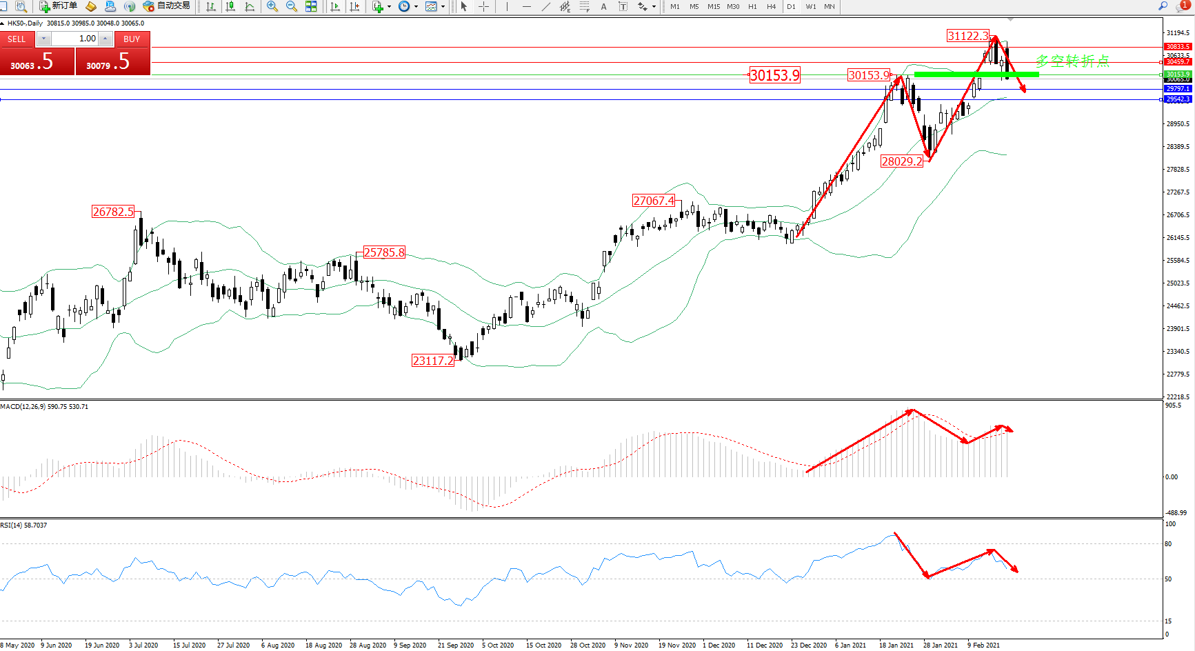 技术点评:多头动力延续布林带指标通道中上轨区间持续震荡上扬态势良好,期间多次试探上轨附近节点破位至31122位置附近遇阻回撤,布林带指标呈张口走势后缓慢收口中,短期回撤或将持续,MACD指标处于多头区域持续震荡走势中,RSI指标处于多头区域高位持续震荡回撤持续中;