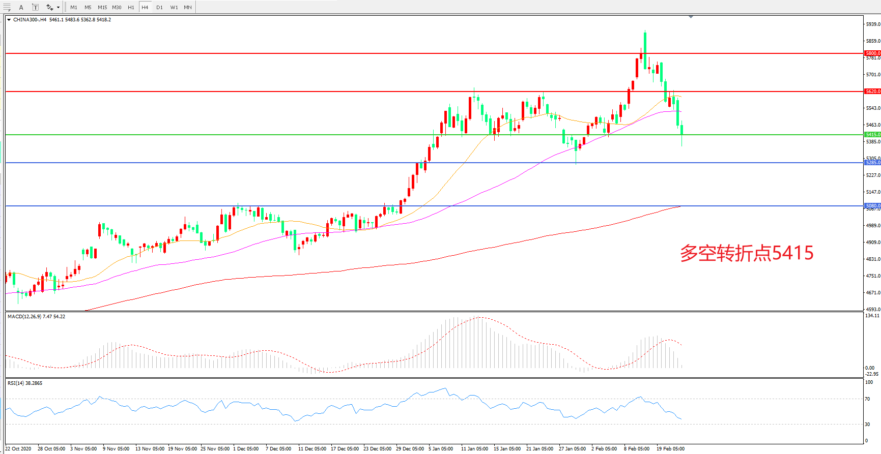 交易策略:在5415.00之下看跌,目标5285.00    5080.00