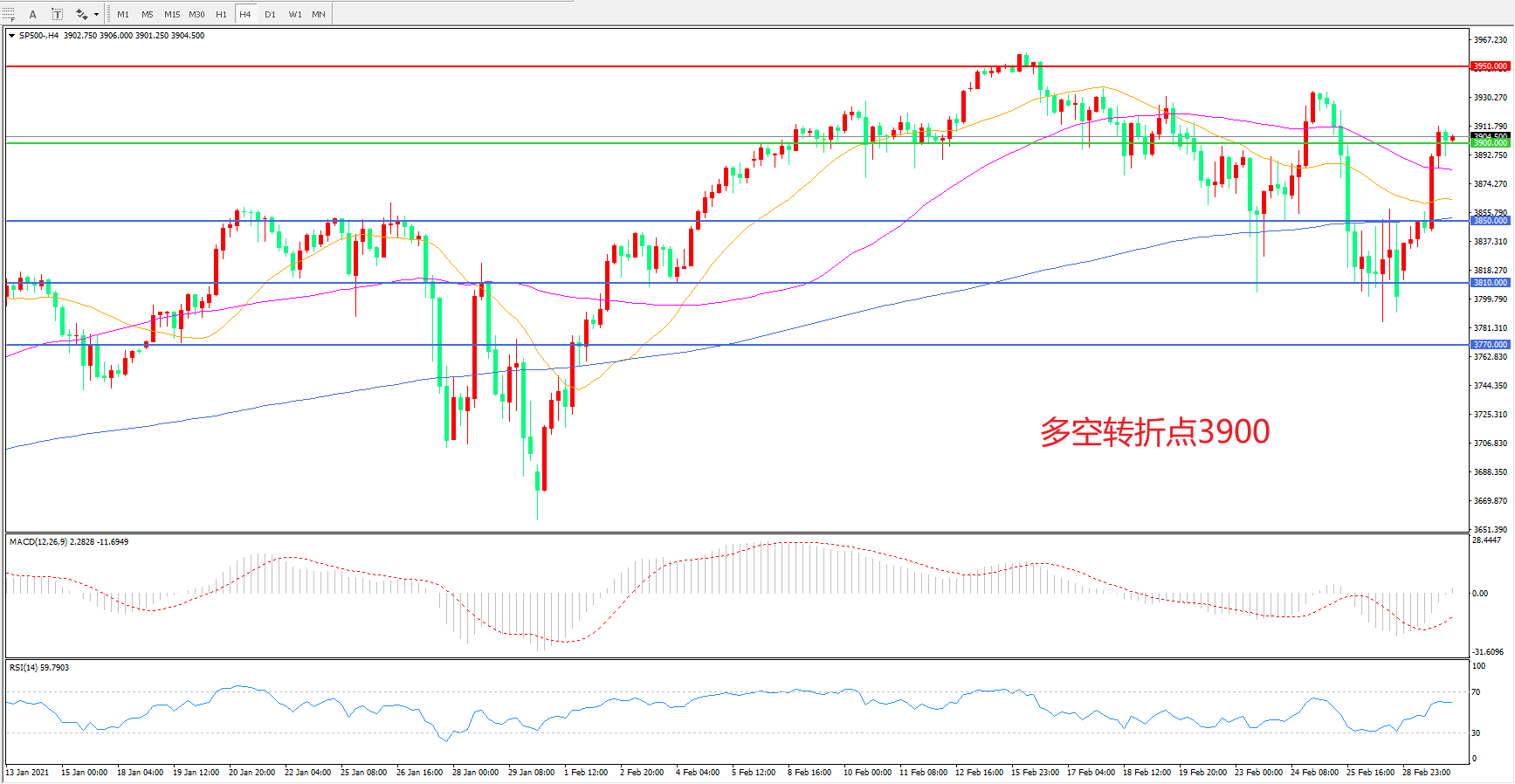 周一(3月1日),因美众议院通过拜登1.9万亿美元的纾困计划,10年期美债收益率下滑,美股在3月第一个交易日强劲反弹,标普500大幅拉升,收报3902.75点。大型科技股中,苹果领跑,Facebook、奈飞、谷歌母公司Alphabet均涨超2%。从目前看,美债收益率还有一定的上升的空间,而如果是较慢的间歇式上涨那么对经济和股市的冲击会小很多。