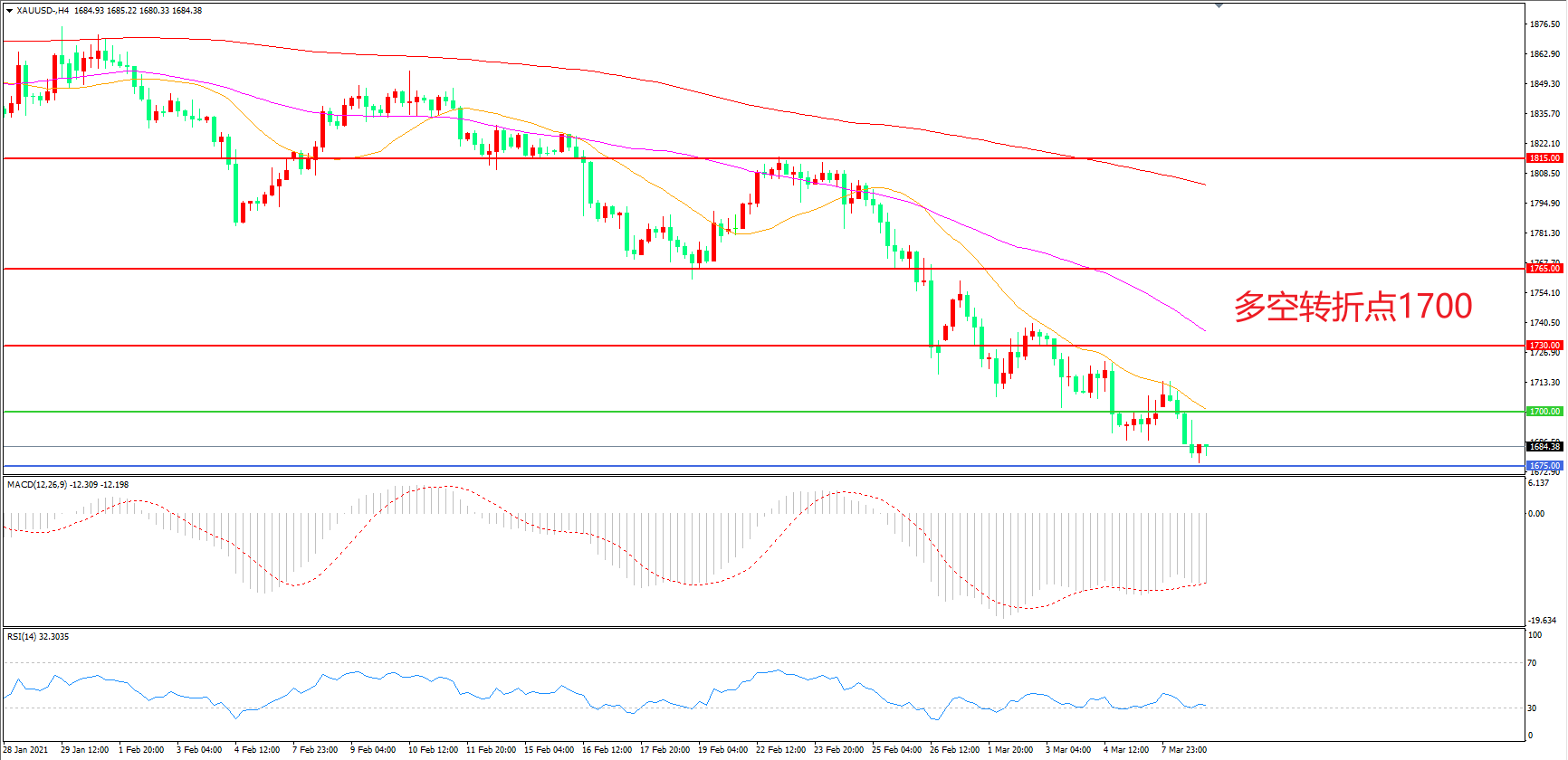 交易策略:在1700.00之下看跌,目标1675.00    1640.00