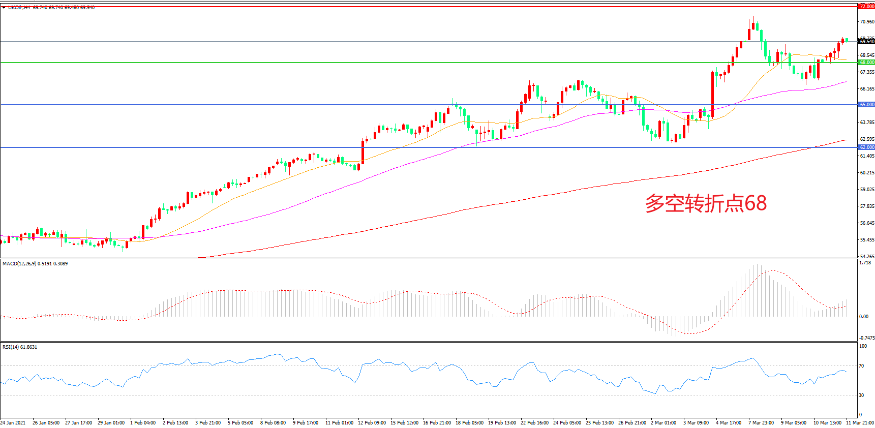 昨日,美国总统拜登签署了1.9万亿美元的新冠纾困救助法案,这标志着该法案正式生效,随着天量刺激逐渐投放市场,宏观情绪再次转向乐观,EIA数据中美国汽油库存下降,对终端产品的强劲需求抵消了多头顾虑,短期之内油价似乎不太可能有大跌的条件,投资者可以在控制好风险前提下继续参与做多机会。
