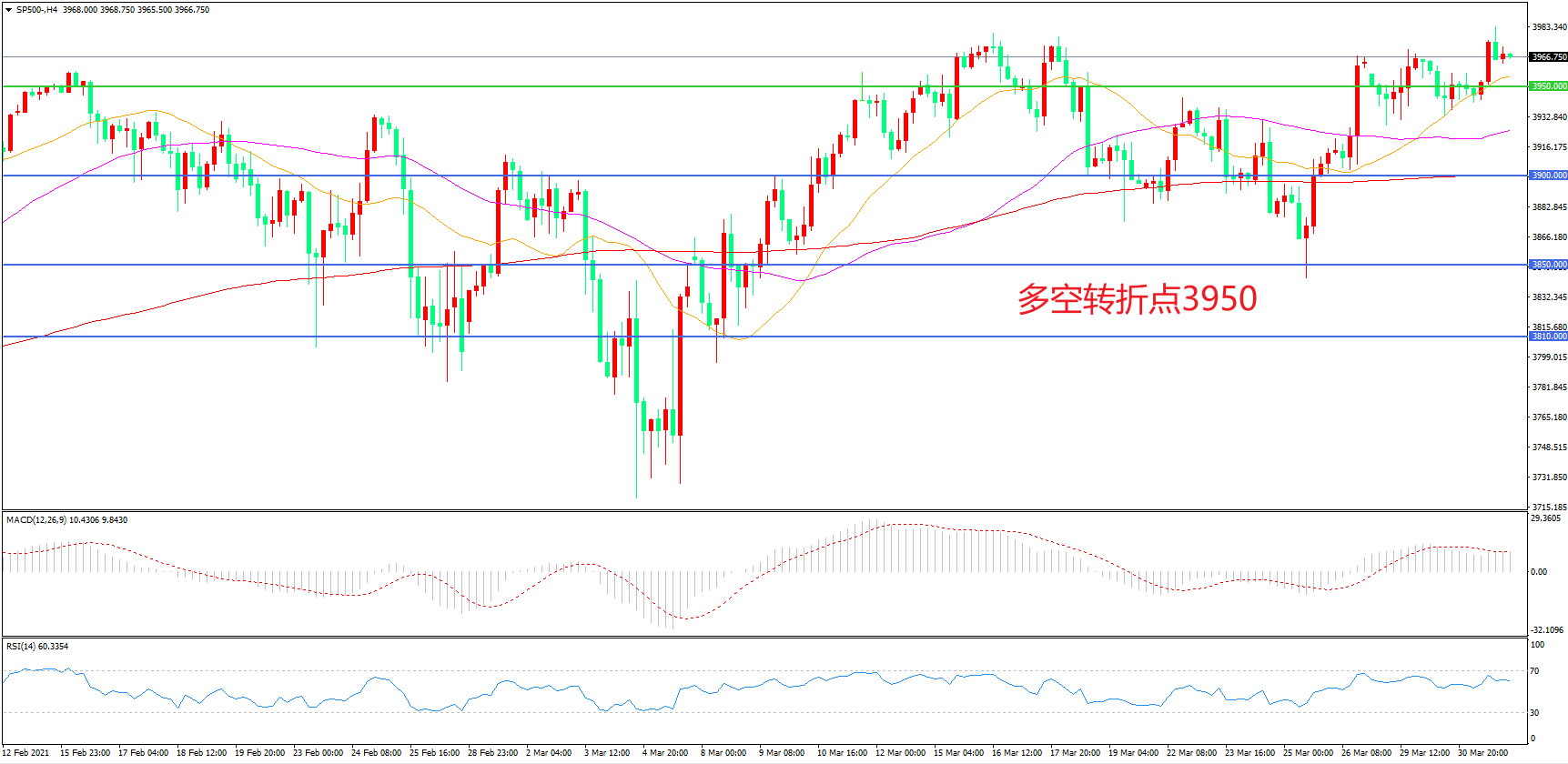 周三(3月31日),拜登公布包括基建在内的重大经济刺激方案时,10年期美债收益率暂时脱离前一日所创的14个月高位,上升势头放缓,美股下行压力缓和,标普500小幅拉升,收报3968点。标普500的11大板块中,周三有5个收涨,6个收跌,表现较为均衡,其中大型科技股表现亮眼,Facebook涨超2%,苹果收涨近1.9%,微软收涨近1.7%。