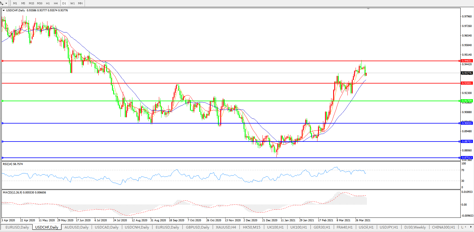 美元兑瑞郎USDCHF    日线图: