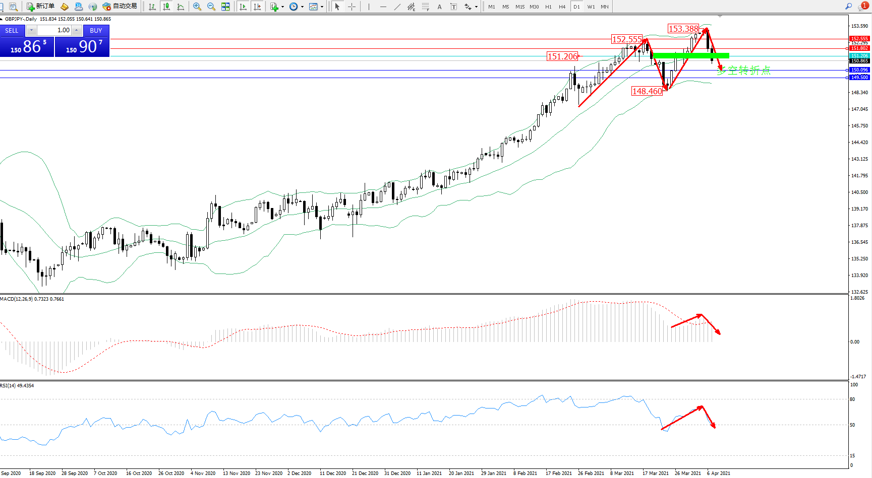 技术点评:多头动力延续布林带指标通道持续震荡上扬态势良好,高位抵达153.388位置后遇阻回撤,处于中轨下方徘徊中,空头动力有继续下行迹象,布林带指标呈高位整理平移中,MACD指标处于多头区域维持震荡后缓慢下移,RSI指标处于多头区域维持震荡后急速下挫,触及50均衡线附近徘徊;
