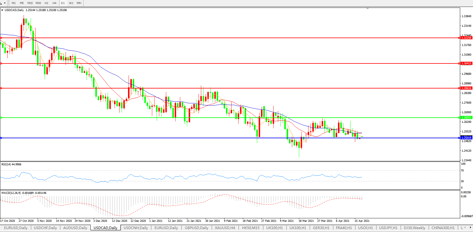 美元兑加元USDCAD    日线图: