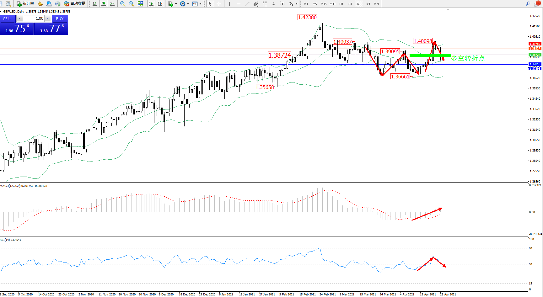 交易策略:1.38724下方看跌,目标1.37818、1.37396