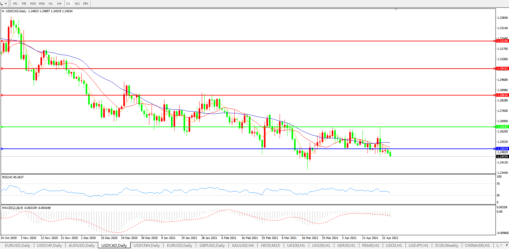 美元兑加元USDCAD 日线图: