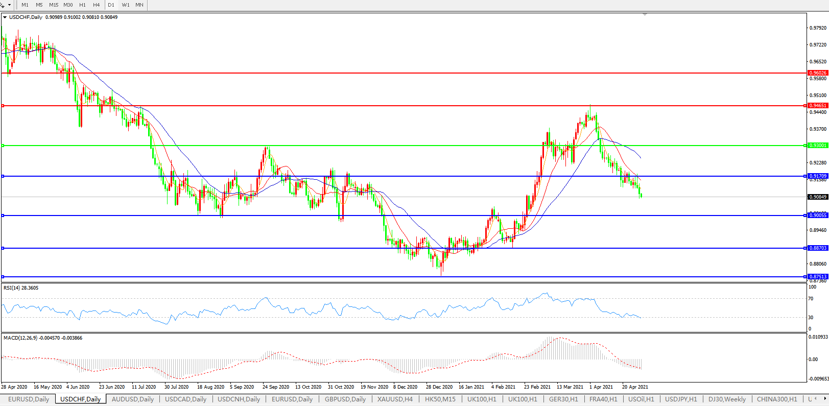 数据提振美元走强 ,美元兑瑞郎继续下行