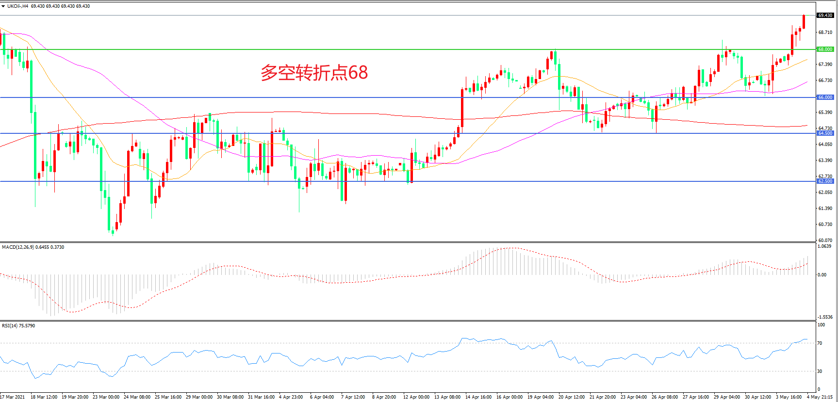多空转折点:68.00