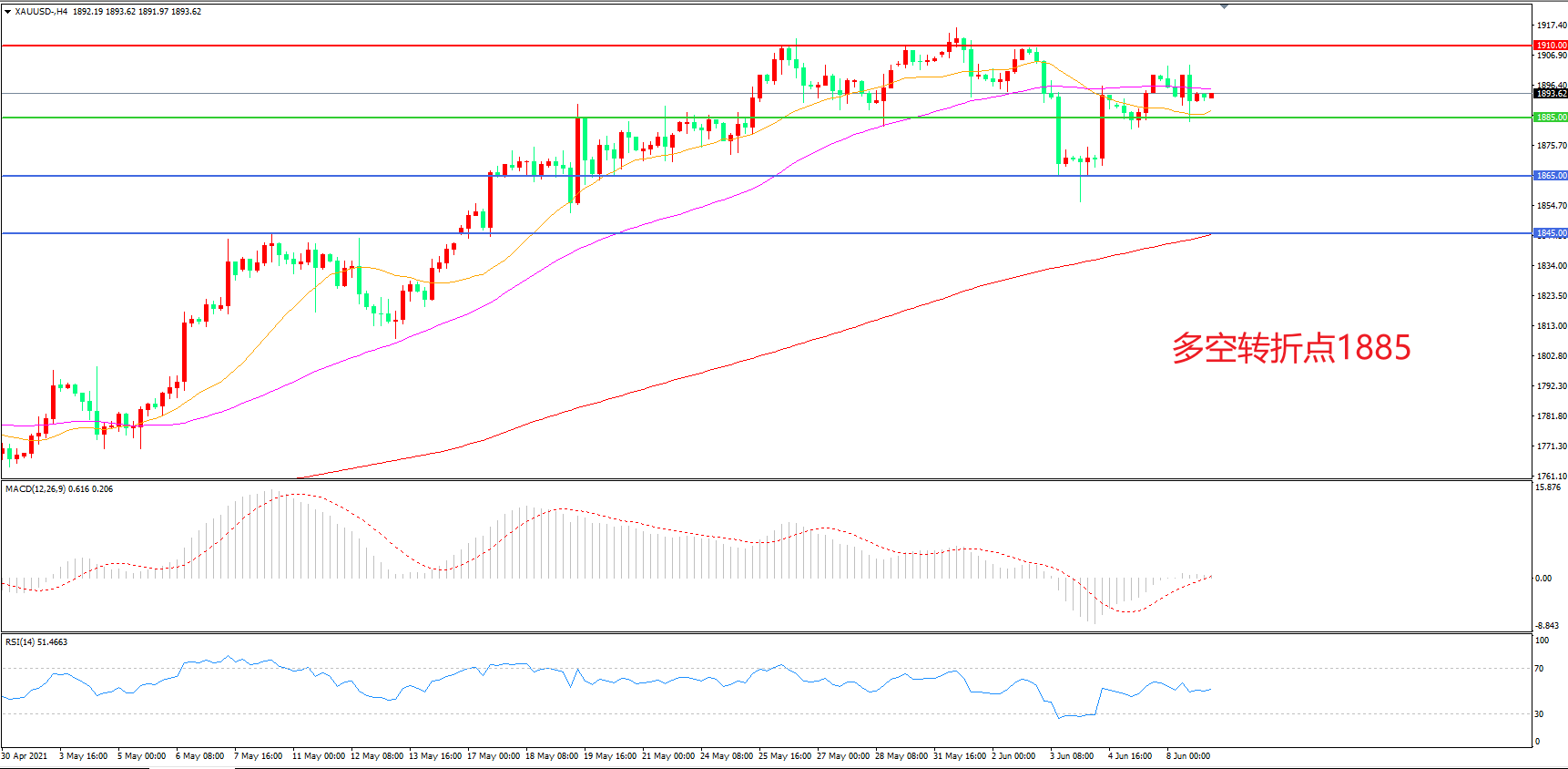 交易策略:在1885.00之上看涨,目标1910.00    1935.00