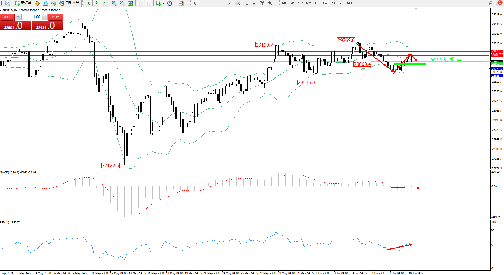 日经225指数6月10日(周四)收盘上涨105.20点,涨幅0.36%,报28966.00点。日本京都大学传染病流行病学教授西浦博率领的研究小组9日在厚生劳动省新冠疫情对策建言专家组织会议上汇报时指出,据推算,如在本月20日解除东京等地的紧急事态宣言,即使新冠疫苗接种进度加快,东京的疫情仍将再次扩散。到8月,可能将无法避免再次进入紧急状态。该推算并未考虑举办东京奥运会和残奥会带来的影响。专家组织主席胁田隆字在记者会上说:“举办东京奥运会和残奥会将成为导致疫情进一步扩散的因素。”