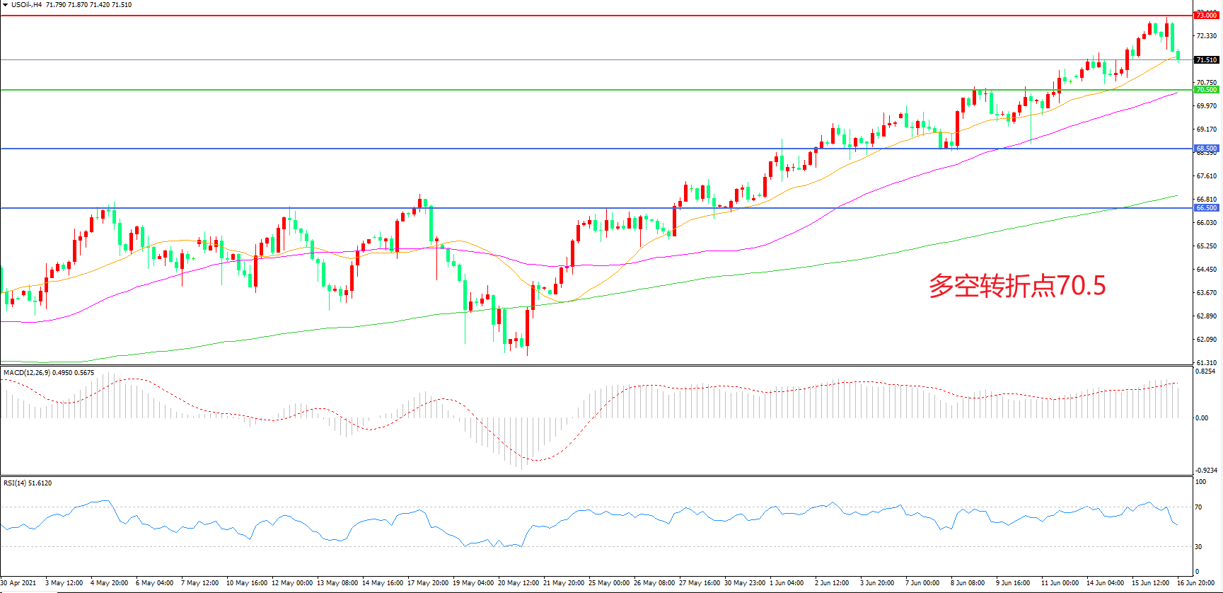 交易策略:在70.50之上看涨,目标73.00    75.00