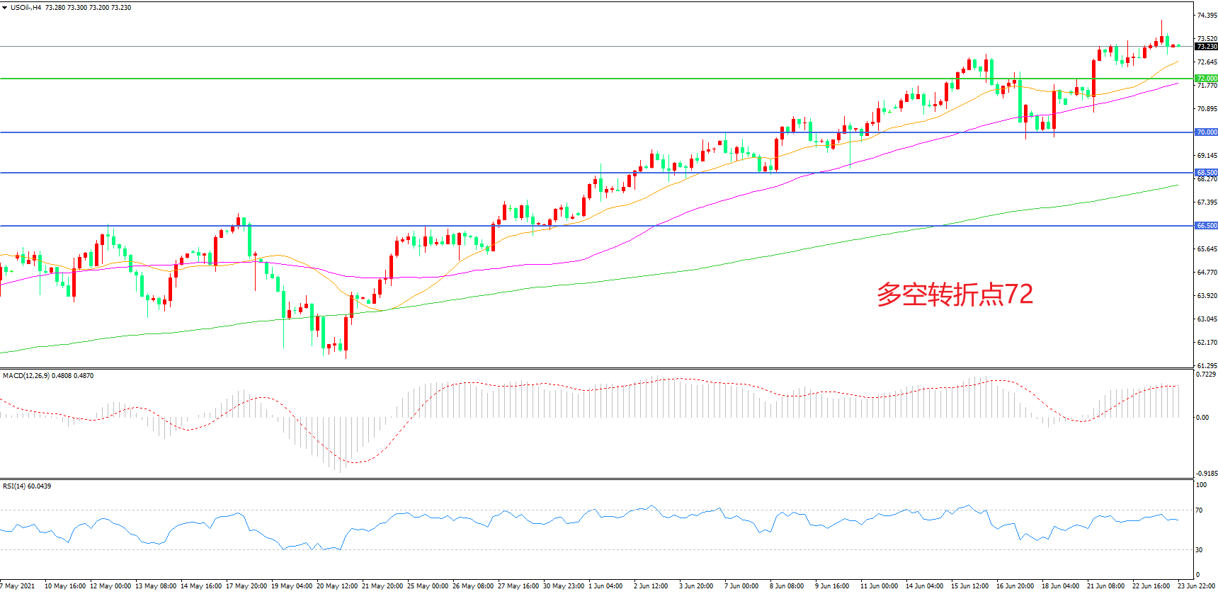 周三(6月23日),市场传闻OPEC+讨论从8月开始将进一步放松原油产量限制,俄罗斯预计将在中期看到全球石油供应短缺,多空双方表现谨慎,美国WTI原油延续高位震荡,收报73.21美元/桶。从驱动因素来看,需求渐进式恢复是油价上涨的基石,而基于供应端的变量是会增加油价的波动,油价存在更上一层楼的可能。