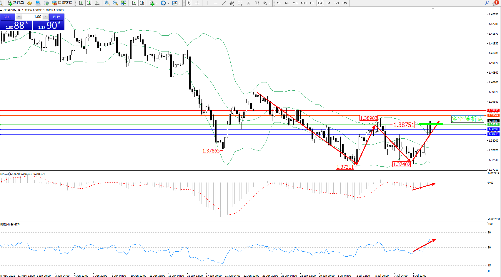 交易策略:1.38751上方看涨,目标1.39064、1.39235