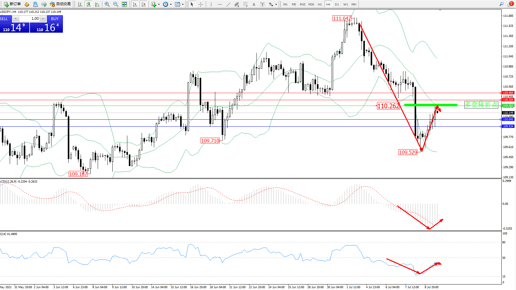 技术点评:空头动力延续布林带指标通道下轨附近持续下探,低位抵达109.529位置后得到支撑反转上扬,触及布林带指标上轨附近节点后有反转下移迹象,布林带指标呈下行趋势通道走势持续中,关注中轨附近节点,MACD指标处于空头区域低位开始短暂缓慢回升中,RSI指标处于空头区域低位震荡缓慢上移后开始平移;