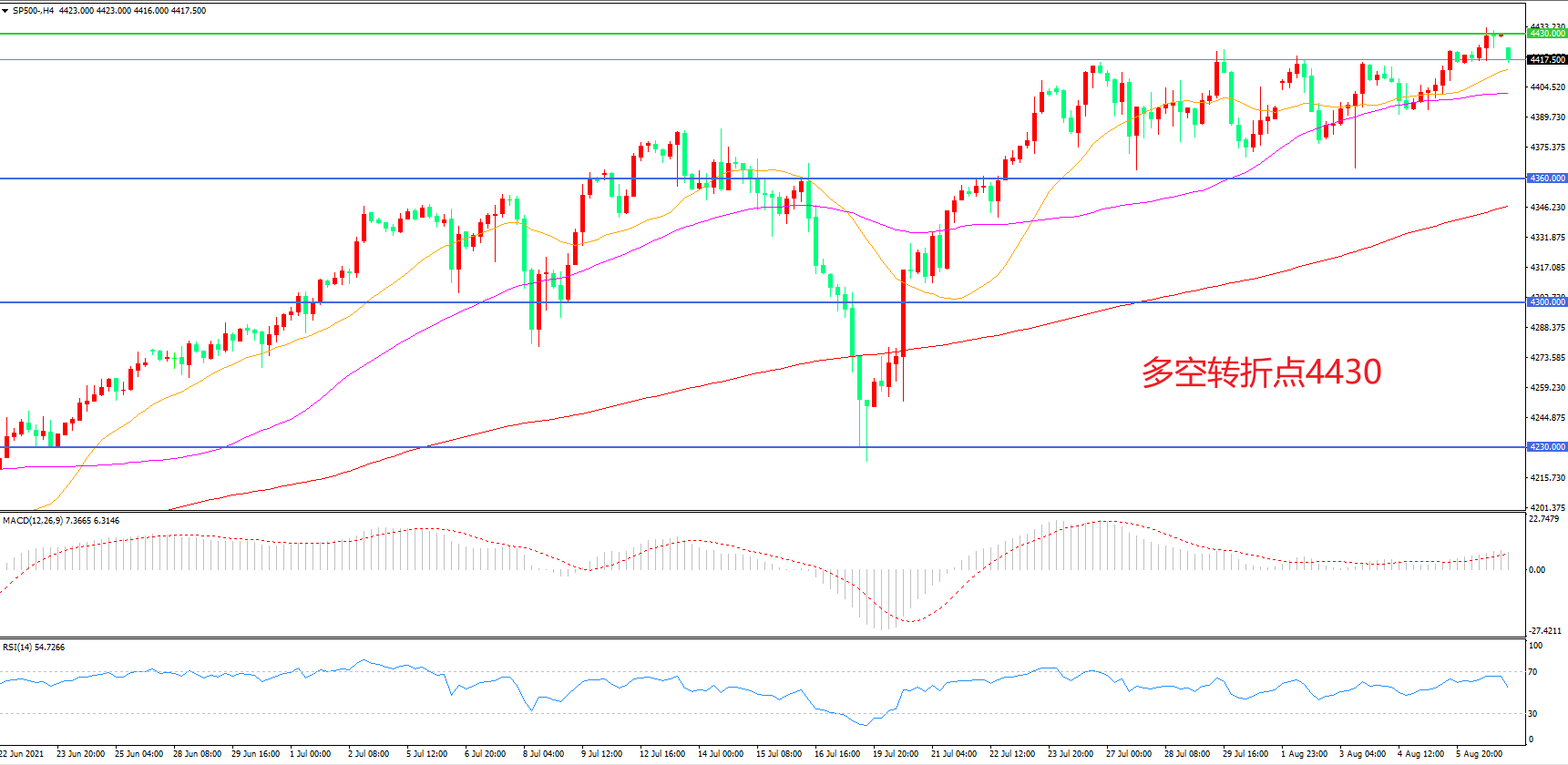 多空转折点:4430.00