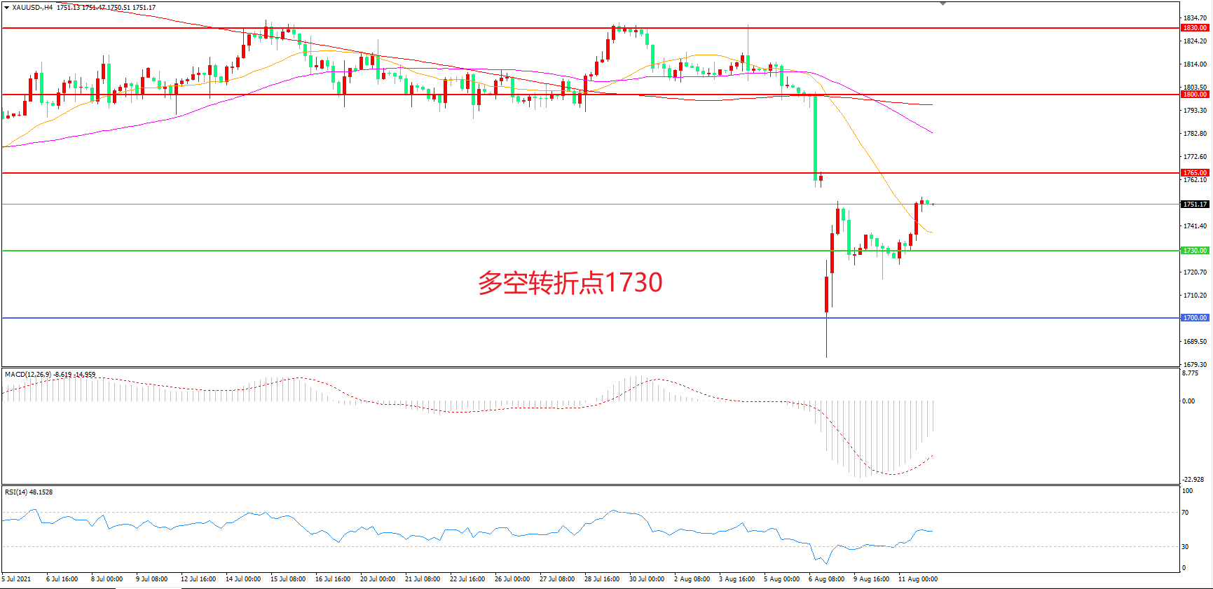交易策略: 在1730.00之上看涨,目标1765.00 1800.00