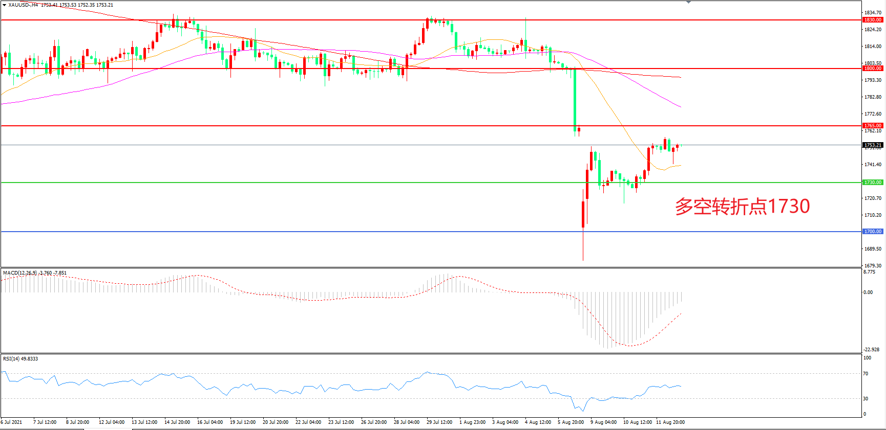 交易策略: 在1730.00之上看涨,目标1765.00 1800.00