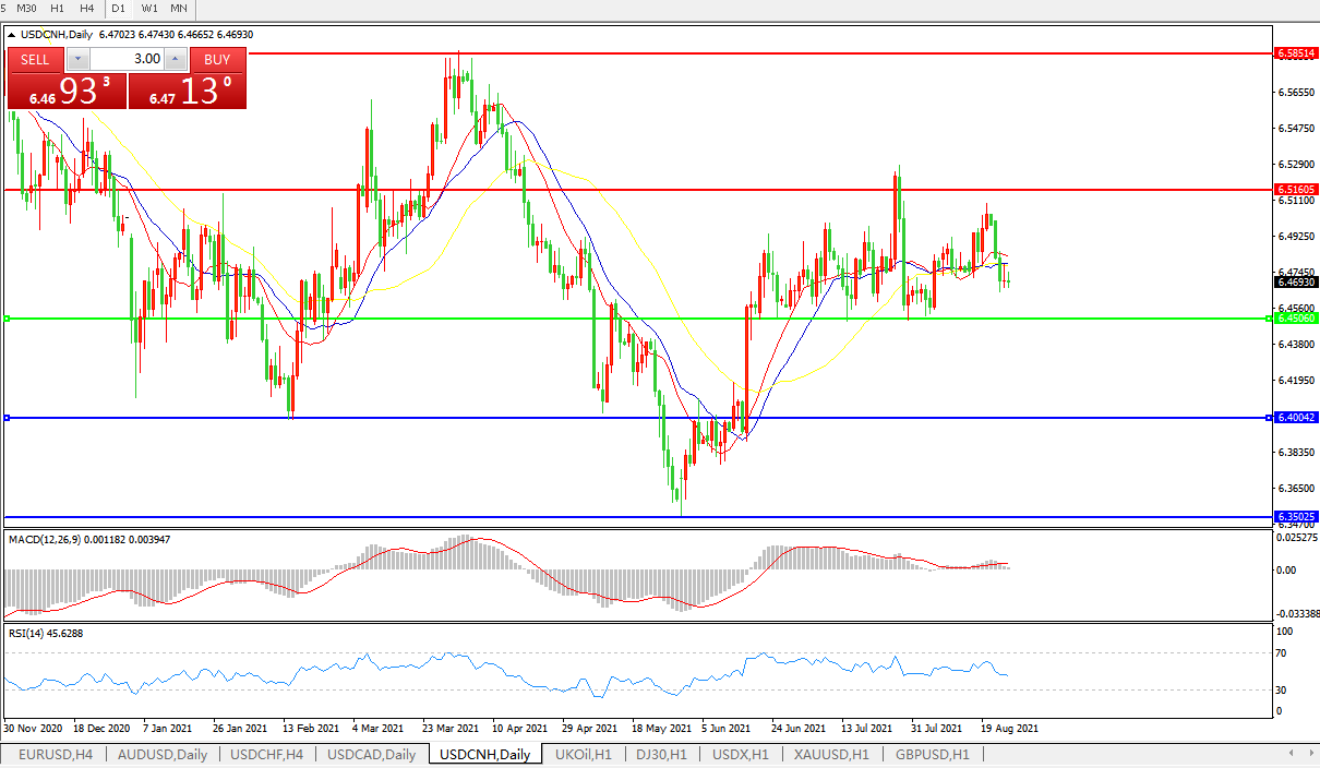 备选策略:在6.4500之下,看跌,目标价位为6.4000,然后为6.3500。