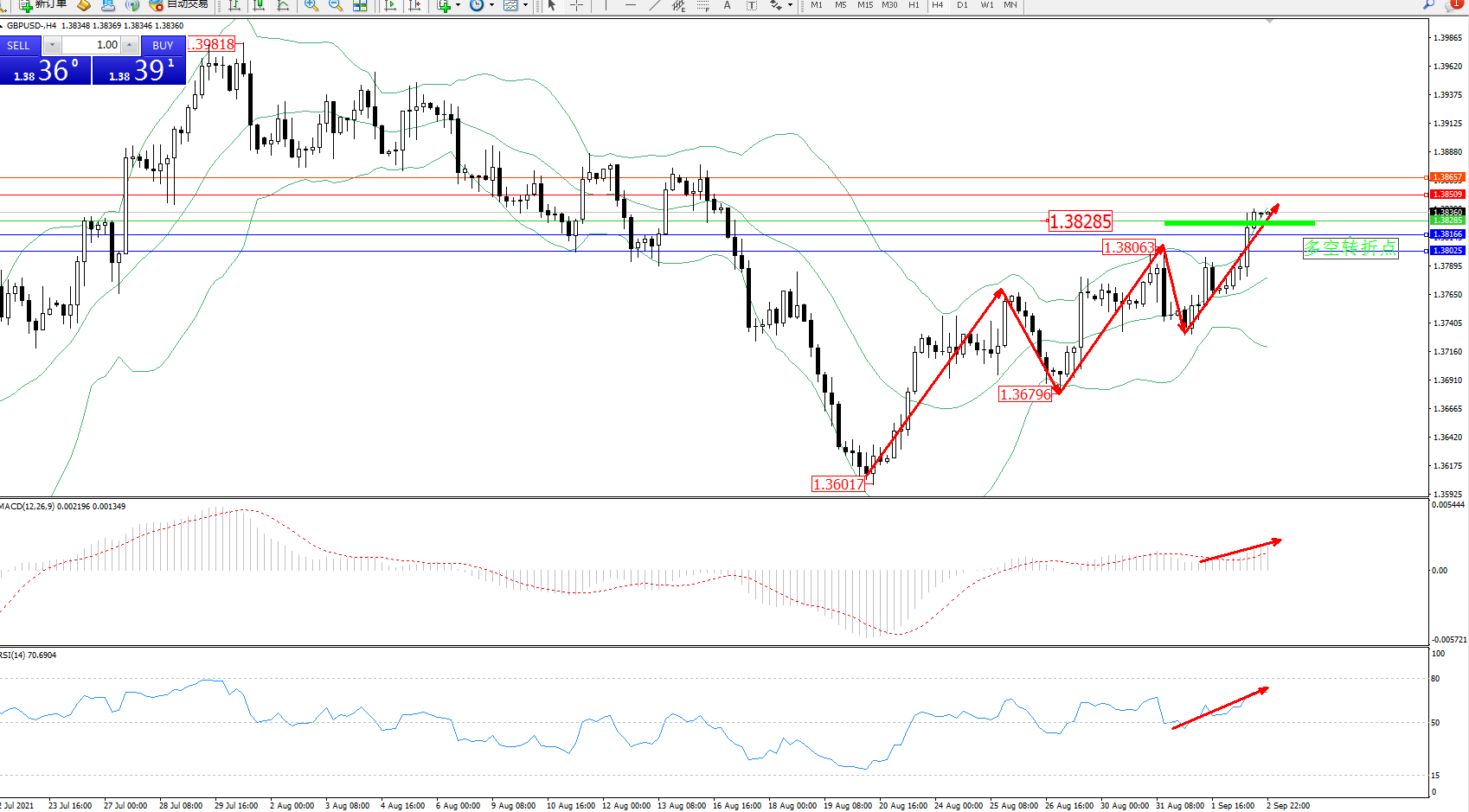 交易策略:1.38285上方看涨,目标1.38509、1.38657
