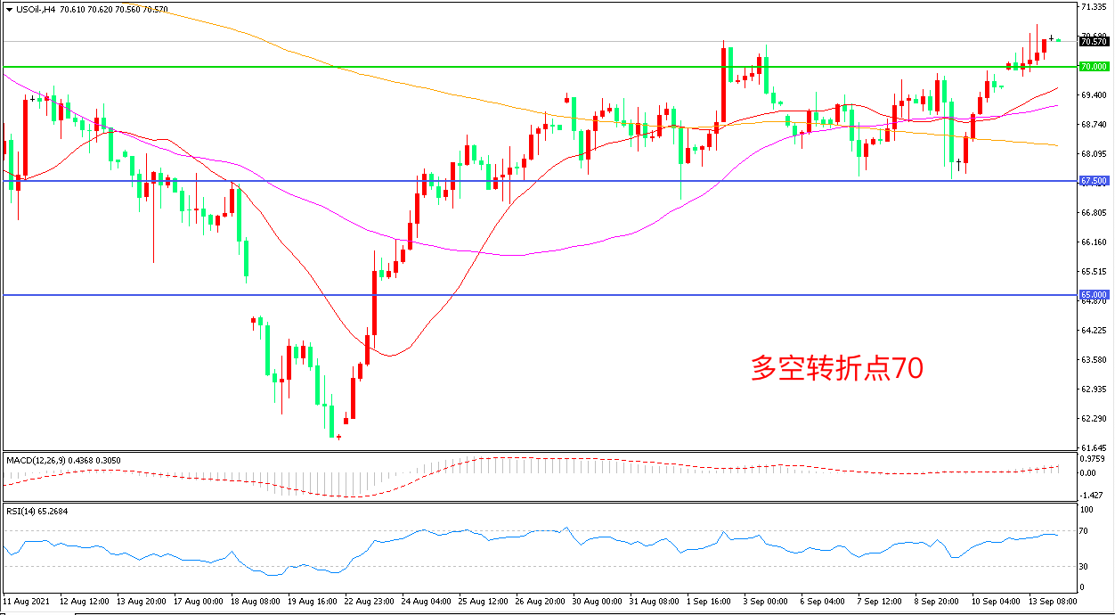 周一(9月9日),继飓风艾达后,热带风暴尼古拉斯又成为干扰美国墨西哥湾油气生产的新威胁,目前墨西哥湾约44%的原油和52%的天然气产能仍关闭,美国WTI原油大幅上行,收报70.60美元/桶。尤为重要的是OPEC报告显示未来一段时间,全球仍将面临供应短缺的局面,OPEC对未来供需平衡的信心点燃了多头热情,油价有望再度冲高。