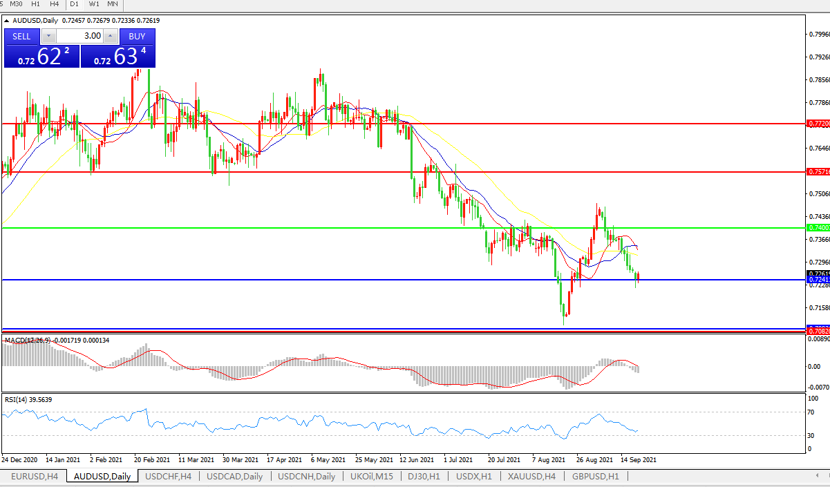 法国兴业银行认为,澳元兑美元反弹迹象依然不明显,自接近0.7480的数月下降趋势线回落,需要升破50日移动均线0.7350才能反弹,短期支撑位于0.7190和8月低点0.7110