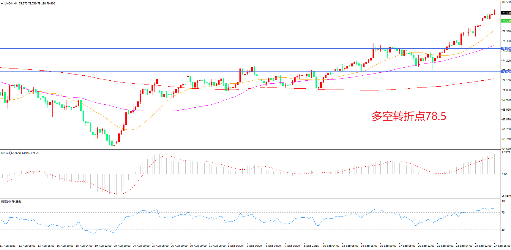 周一(9月27日),寒冬的预期以及大宗商品的大涨对多头信心形成了提振,最近投行和原油大贸易商对于未来价格预期的言论,更是强化了这种市场上行的格局,布伦特原油大幅上行,收报79.40美元/桶。当前受飓风影响下,美国产量没有完全恢复,同时OPEC也在管控着产量的增长,这将会进一步加剧供给紧缺的程度,油价有望再度冲高。