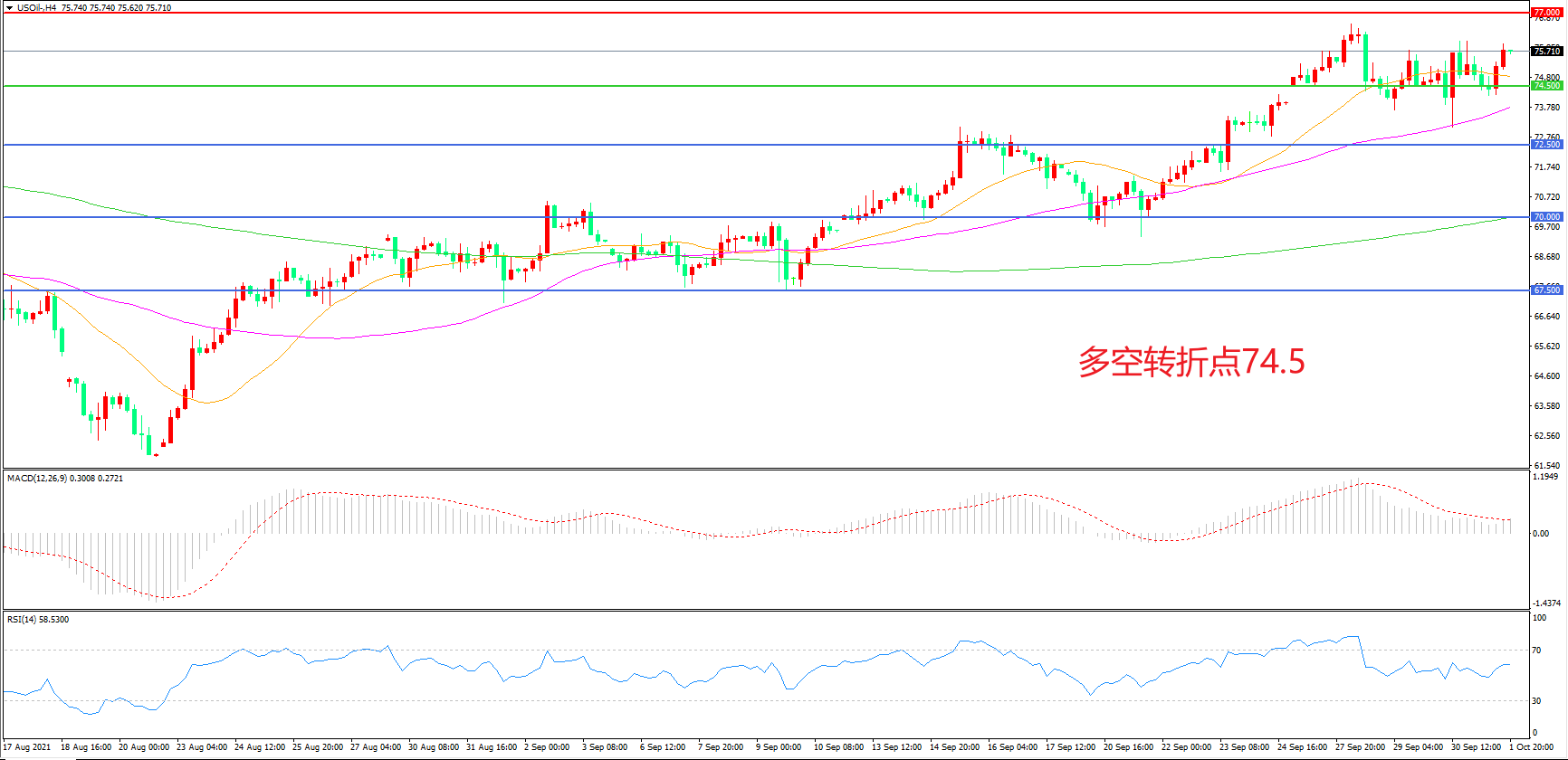 交易策略:在74.50之上看涨,目标77.00                80.00