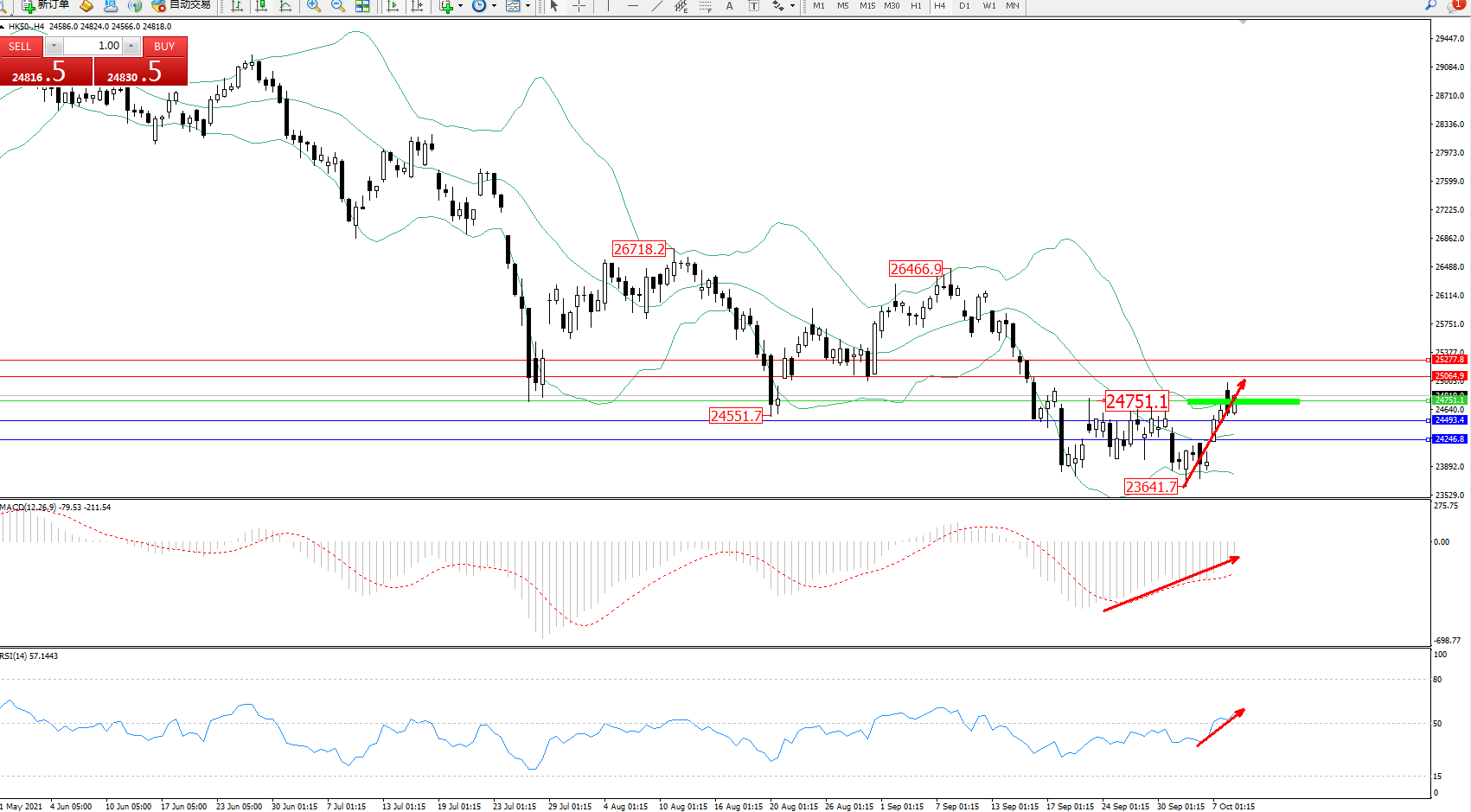 香港恒生指数10月8日(周五)收盘上涨136.12点,涨幅0.55%,报24837.85点;港股主要指数高开低走,盘中三大指数均转跌,午后再度回升转涨。恒生科技指数涨0.56%报6206点。权重科技股多数上扬支撑大市飘红,阿里巴巴大涨5.5%,网易大涨超4%,腾讯、京东涨超2%,快手跌3%;内险股全天表现强势,中国太保大涨超6%,恒大概念股午后拉升明显,保供政策密集落地,近期强势的电力股、煤炭股、钢铁股集体萎靡,中煤能源大跌近14%表现最差。今日大市成交额为1635亿港元,南下资金净流入36.21亿港元。