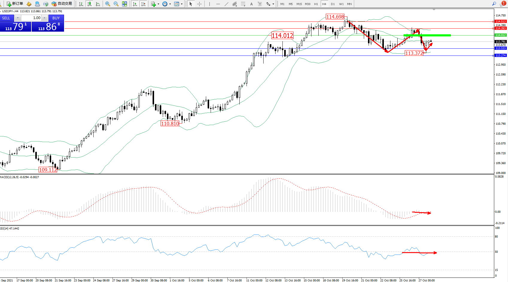 技术点评:高位长时间维持在布林带指标通道内持续宽幅震荡平移中,短期空头动力有伺机入场态势,布林带指标呈收口走势整理,MACD指标处于0轴线附近弱势徘徊,RSI指标处于50均衡线下侧窄幅整理;