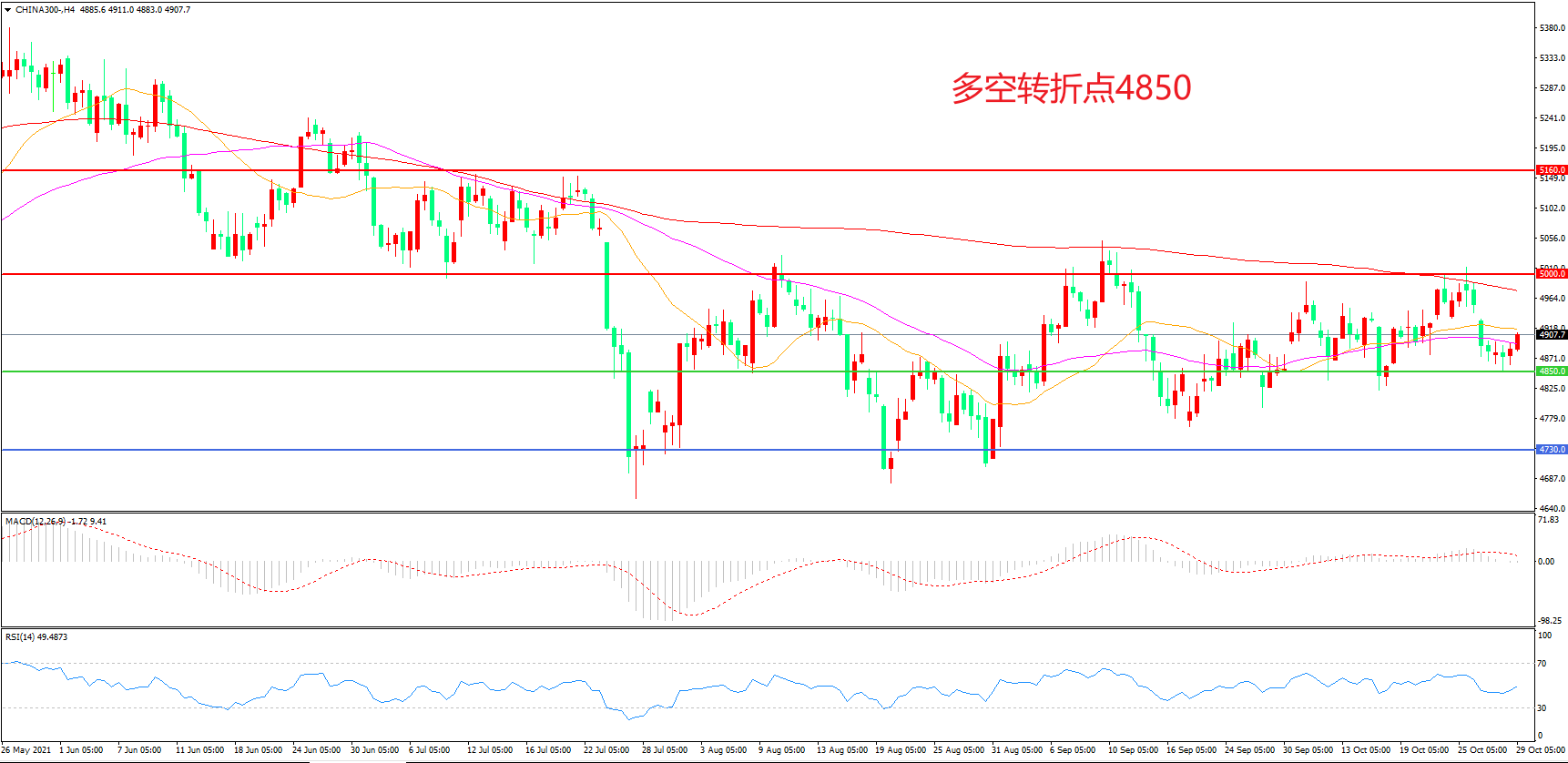 上周五(10月29日),沪深两市整体呈现震荡反弹格局,午后随着各大板块的集体反弹后整个市场人气回暖明显,沪深300震荡上行,收报4907.7点。两市合计成交1.1万亿,北向资金净买入近50亿。如果通胀回落以及流动性宽松趋势确立,市场有望迎来新的趋势性行情,后市应进一步关注量能配合情况,这或将决定指数上攻200周期均线的流畅性。