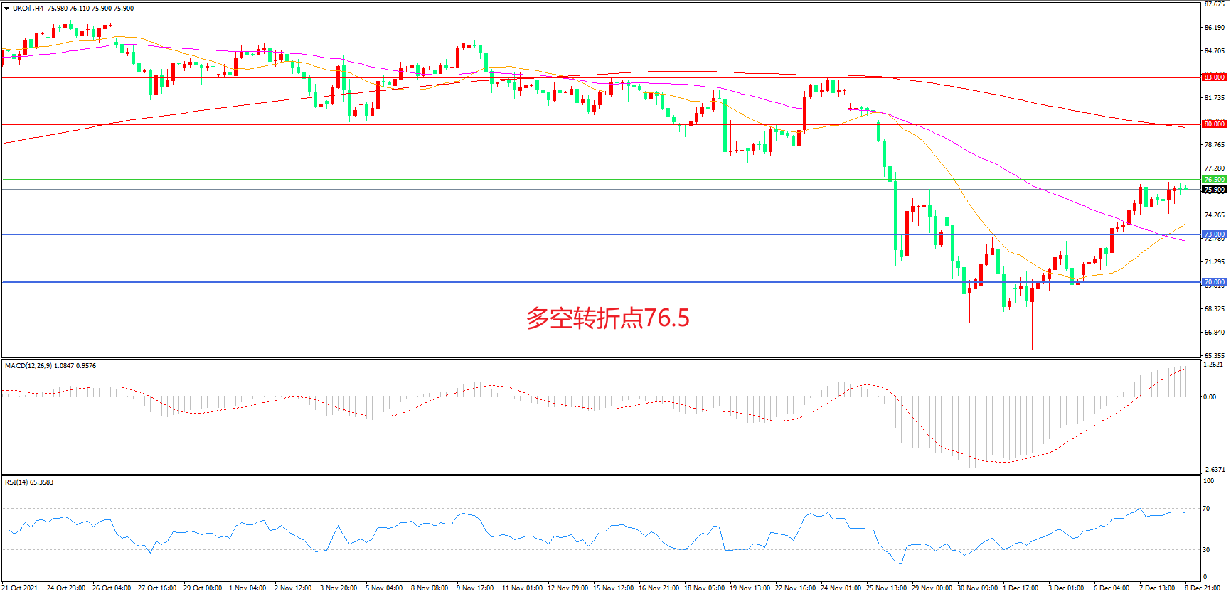 周三(12月8日),根据美国能源信息署公布的数据显示,当周EIA原油库存降幅不及预期,精炼油库存和汽油库存大增,但随着奥密克戎新变种的担忧缓解,市场情绪依然相对乐观, 布伦特原油震荡反弹,收报75.90美元/桶。油价的剧烈波动显示目前市场进入到短线相持阶段,这种状态需要新的变量出现来改变,市场可能会将焦点转移到伊核协议的谈判上。