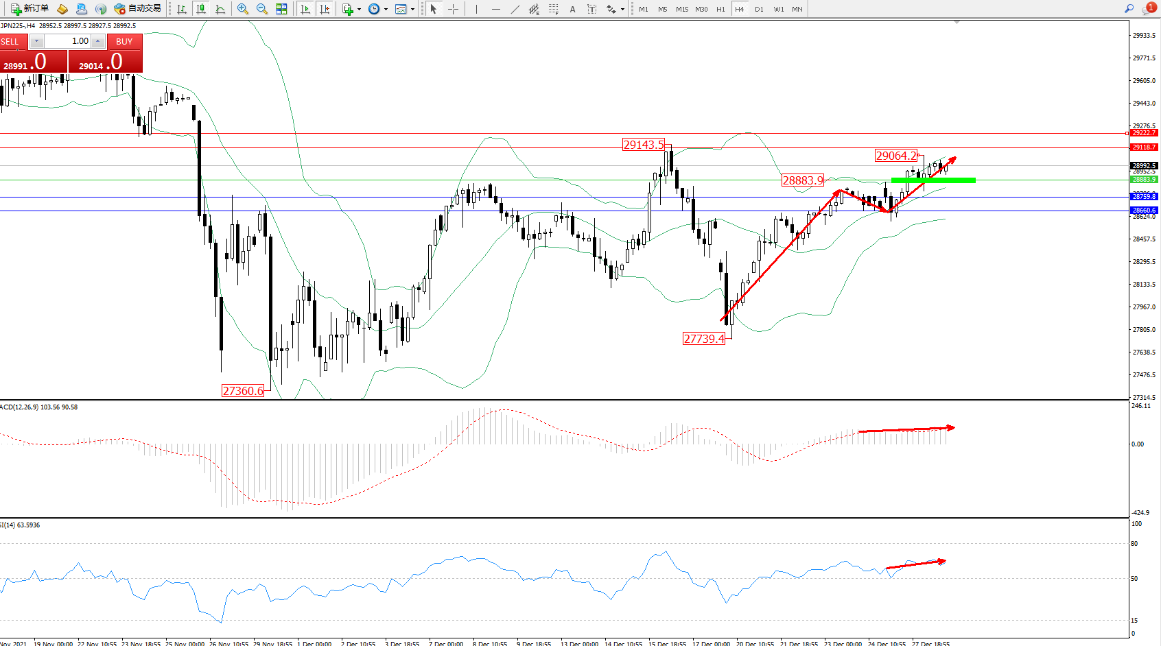 日经225指数12月28日(周二)收盘上涨377.04点,涨幅1.31%,报29053.50点。日本财务大臣铃木俊一:仍需密切关注物价。不认为最近的通货膨胀会对经济产生负面影响。通过创造企业将成本转移到价格上的环境来促进加薪是很重要的。必须关注通胀预期对市场的影响。内阁的(高)支持率应该有助于政策的制定。目前还没有计划明年追加预算的问题。
