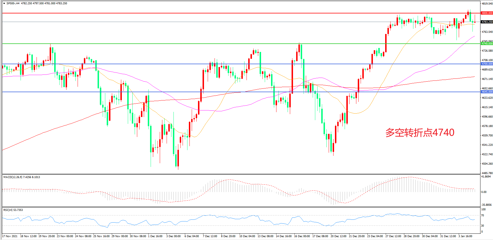 周二(1月4日),美国单日新增病例突破100万,疫情蔓延引发的担忧导致科技股遭到抛售,但原油继续反弹带动的能源板块领涨,标普500先跌后涨,收报4783.25点,目前市场上多空因素交织,投资者焦点都聚焦在美联储会议纪要和非农表现上,如果非农数据表现亮眼,可能会对市场信心形成提振。