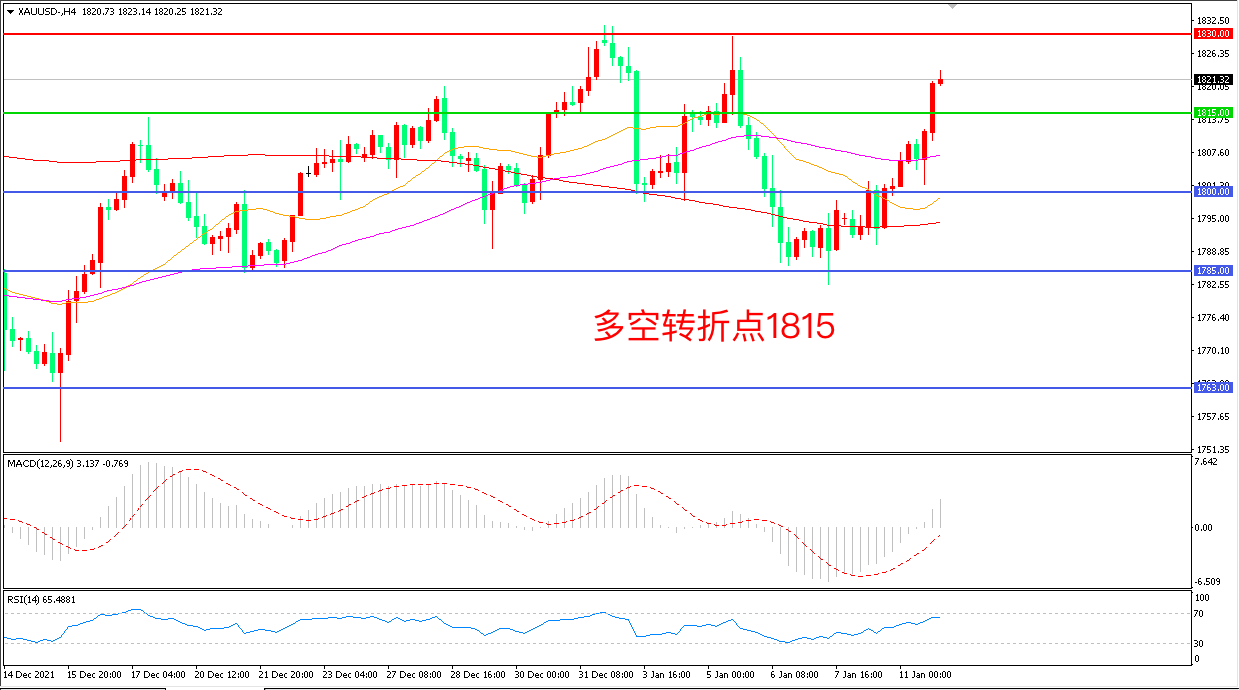 交易策略:在1815.00之上看涨,目标1830.00       1845.00