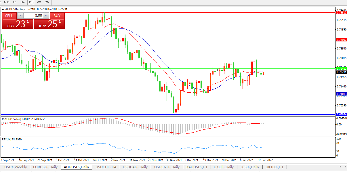 备选策略:0.7240上方看涨,目标0.7400、0.7550