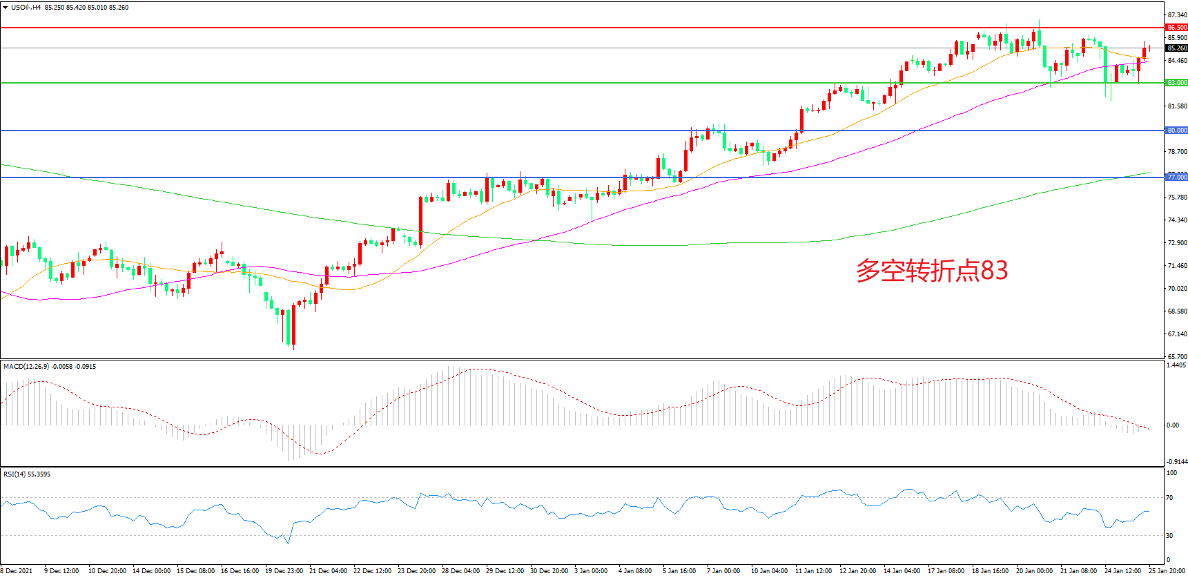 交易策略:在83.00之上看涨,目标86.50 90.00