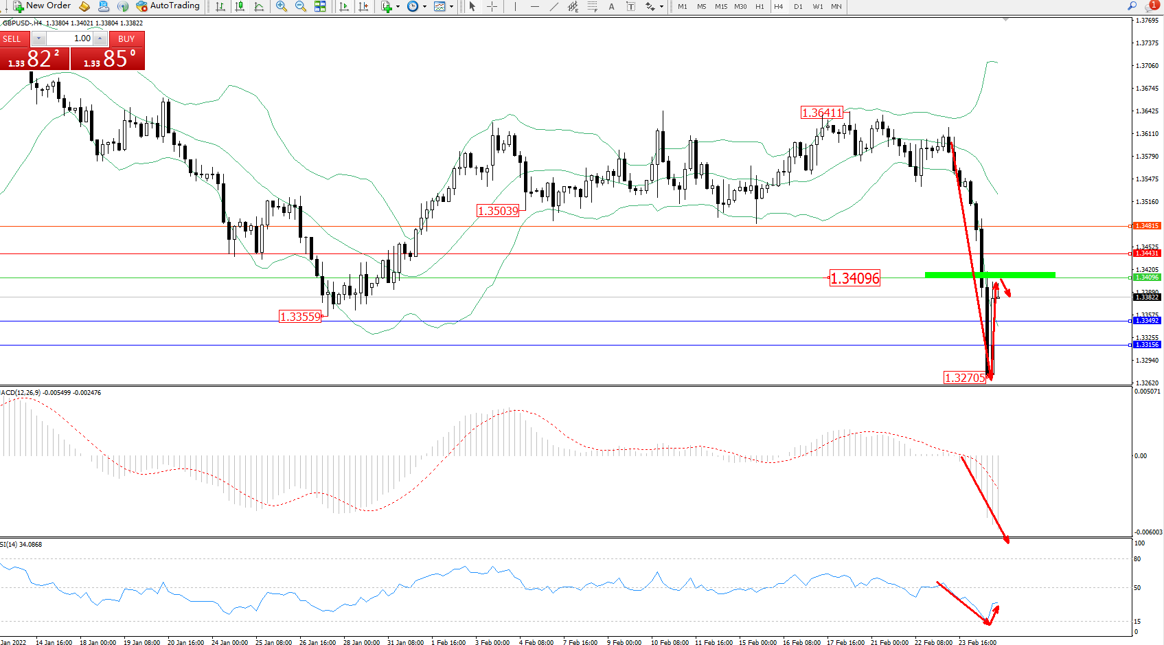 英镑兑美元维持1.33825附近震荡,俄罗斯入侵乌克兰吓坏了投资者,引发了全球股市的大规模抛售,这反过来又有力提振了避险货币美元,这被视为给英镑兑美元施加巨大下行压力的关键因素,并拖累现货价格回到1.3500的关键心理关口以下。