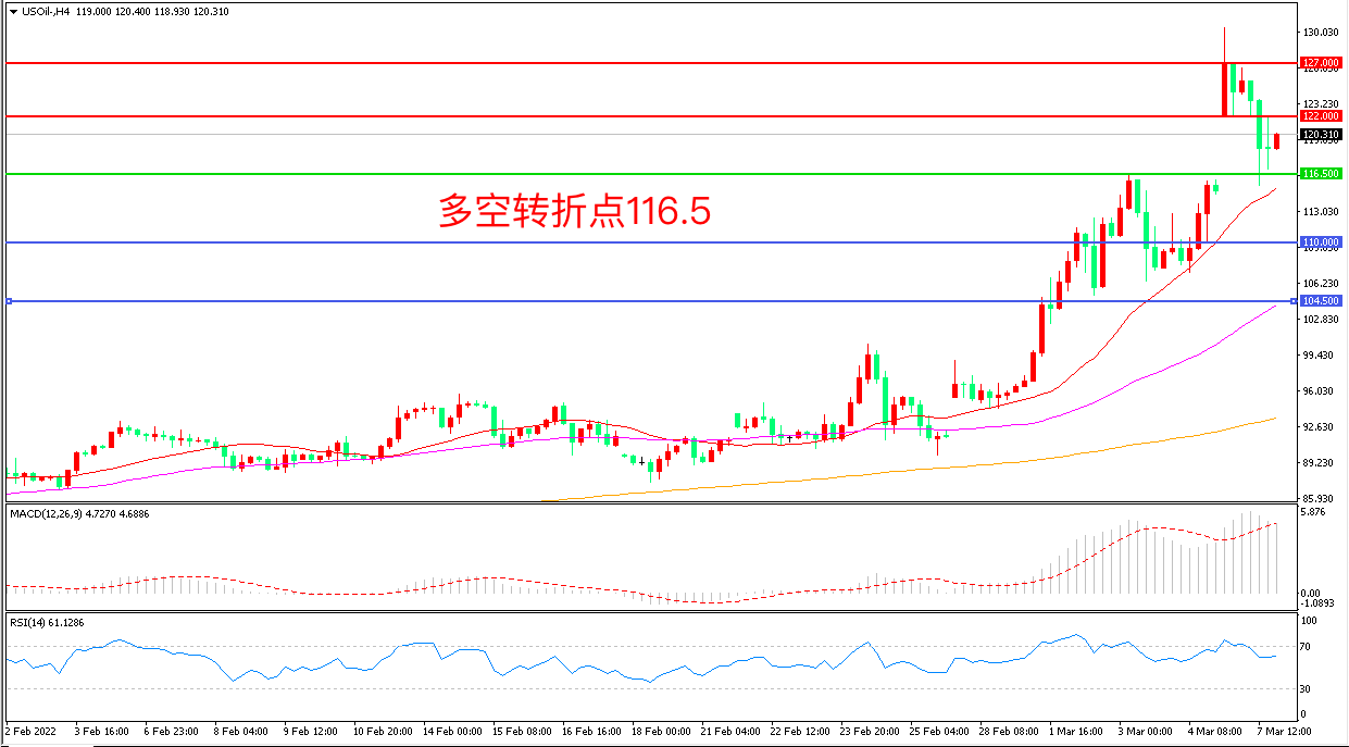 交易策略:在116.50之上看涨,目标122.00           127.00