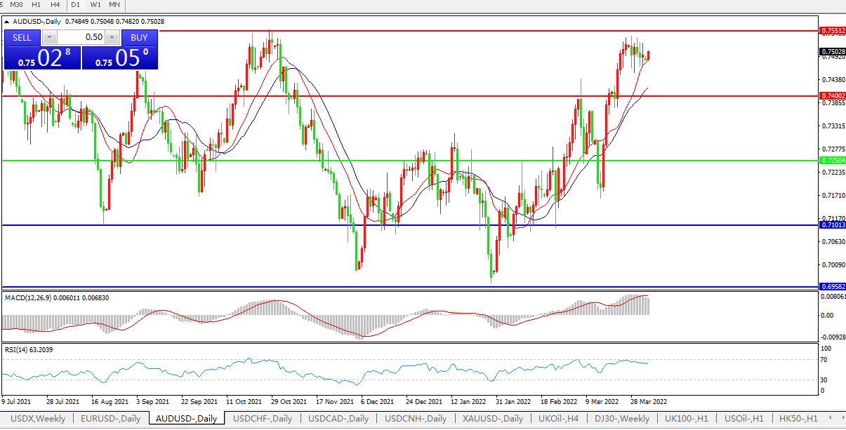压制位:0.7400    0.7550