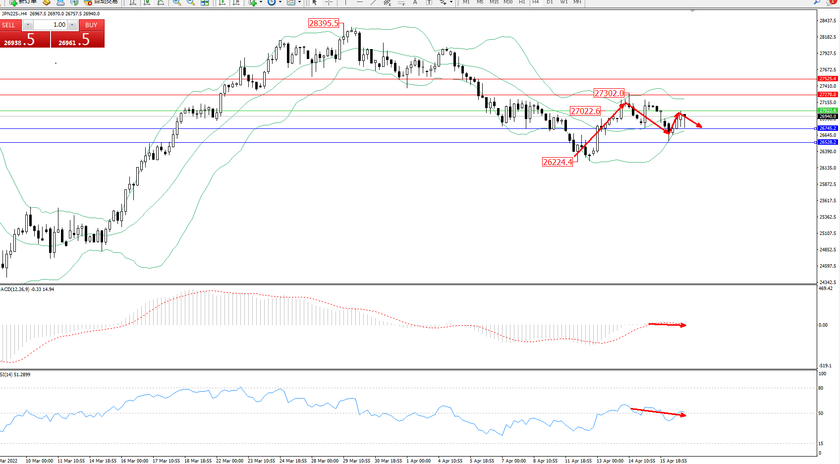 交易策略:27022下方看跌,目标26745、26528