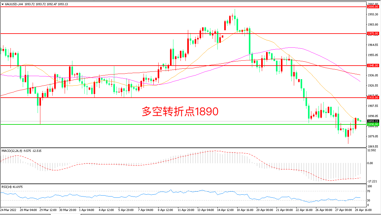 交易策略:在1890.00之上看涨,目标1915.00       1945.00