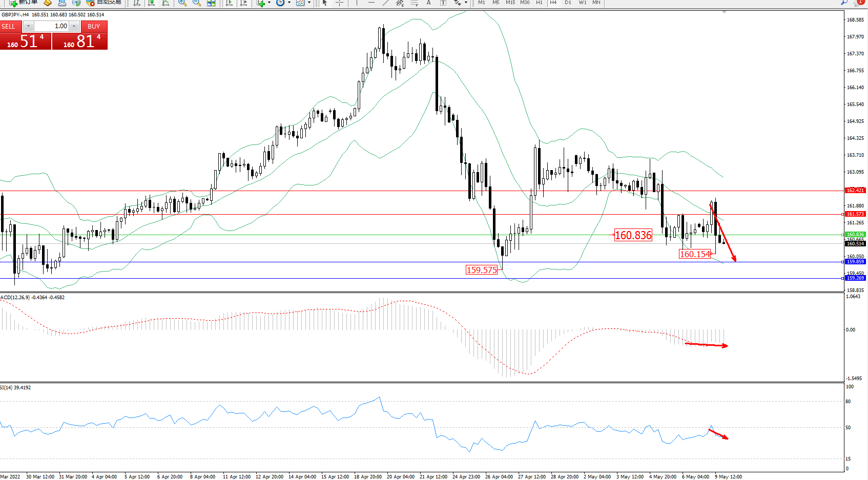 技术点评:空头动力延续布林带指标通道中下轨区间持续震荡向下移动,短期抵达160.154附近节点后开始震荡,且下行趋势态势良好,未见最终止步迹象,布林带指标呈空头下行走势或将持续,MACD指标处于0轴线下方空头区域维持整理平移,RSI指标处于50均衡线下侧弱势徘徊中;