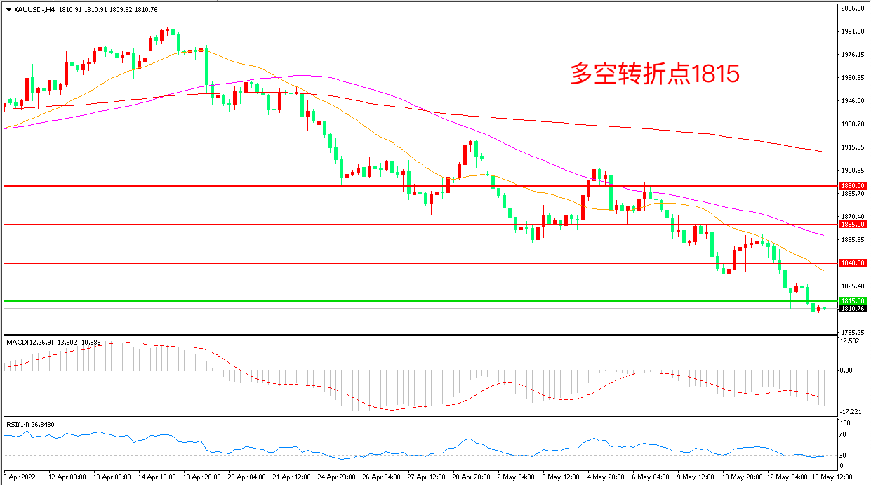 交易策略:在1815.00之下看跌,目标1790.00      1765.00