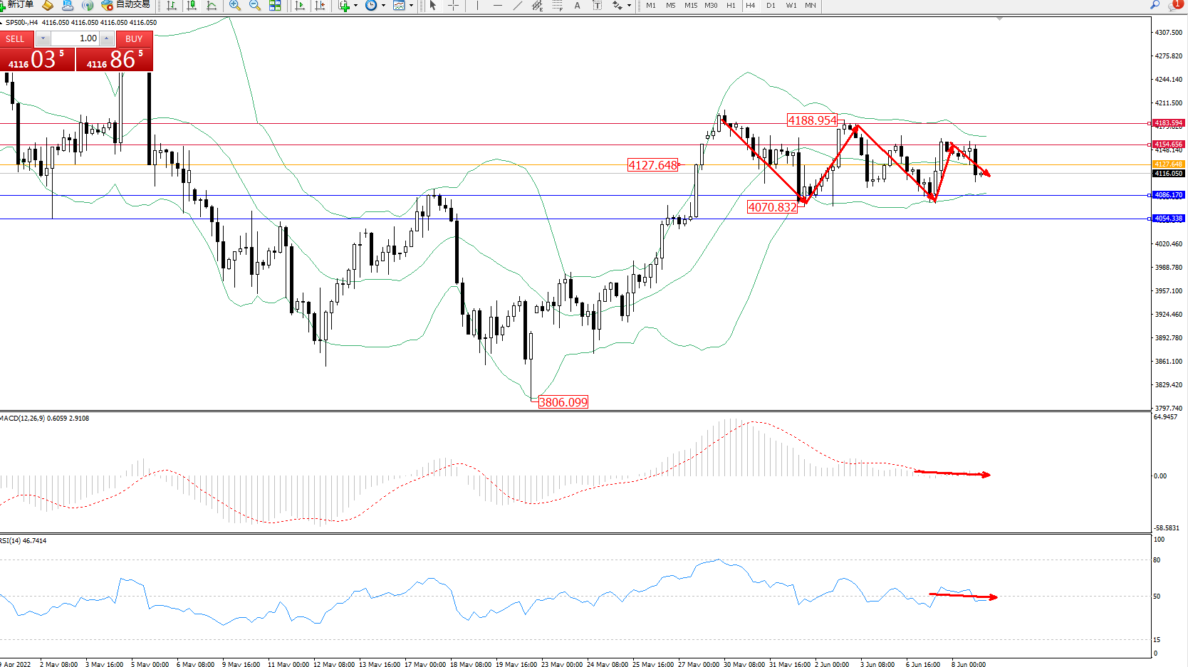 标普500指数收跌44.91点,跌幅1.08%,报4115.77点。美联储到6月份加息25个基点的概率为0%,加息50个基点的概率为94.8%,加息75个基点的概率为5.2%;到7月份累计加息25、50个基点、75个基点的概率均为0%,累计加息100个基点的概率为83.2%,累计加息125个基点的概率为16.2%,累计加息150个基点的概率为0.6%。